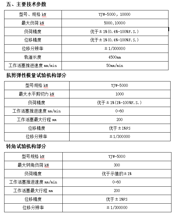 - 轉(zhuǎn)角作動(dòng)器,高精度負(fù)荷傳感器一只,油缸位移傳感器一只,變形位移傳感器四只,分辨力001mm(與軸向壓縮變形位移傳感器相同),量程50mm。